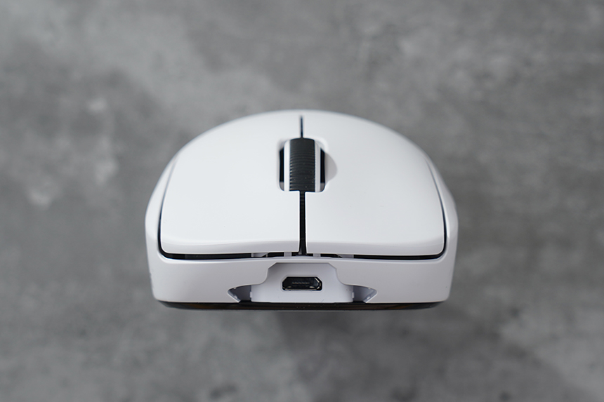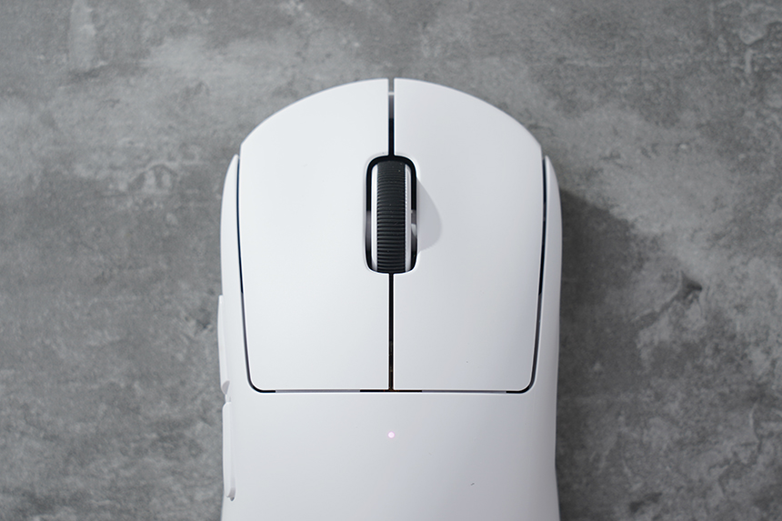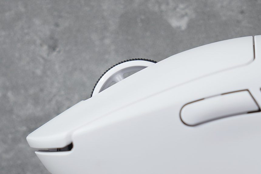 로지텍 G PRO X SUPERLIGHT 게이밍 마우스의 좌우 버튼은 분리된 형태로 제작되어서 서로 간섭이 생기지 않도록 설계되었습니다. 그리고 경량화를 달성하기 위해서 마우스 휠의 내부 공간도 비워져 있는 것을 확인할 수 있습니다.