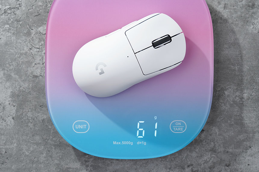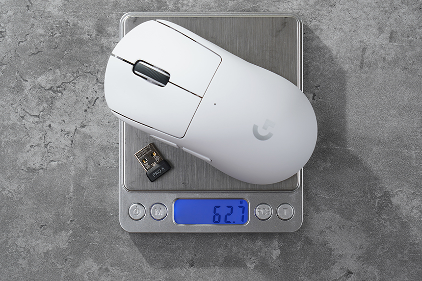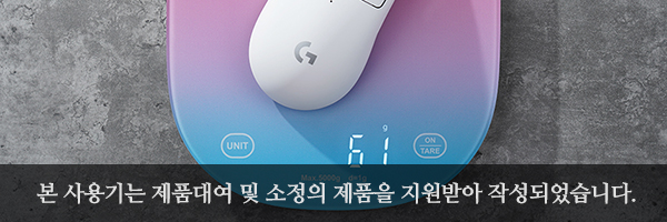 로지텍 G PRO X SUPERLIGHT 게이밍 마우스의 핵심은 가벼운 무게라고 할 수 있습니다. RHS 버튼 제거, 구조 정제화, PCB 개선, 파워플레이 슬롯 무게 감소 등의 기술이 적용되어서 실측 결과 약 61.1g이었고 LIGHTSPEED 무선 수신기까지 추가해도 62.7g이었습니다. 유선 마우스보다도 오히려 가벼운 느낌이었습니다.