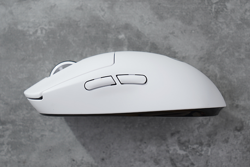 옆쪽을 살펴보면 앞으로, 뒤로 버튼이 배치되어 있습니다. 위치도 적절한 편이어서 편안하게 사용할 수 있습니다. 그리고 필요에 따라서 로지텍 G HUB 프로그램에서 자신이 원하는 기능을 할당할 수 있습니다.