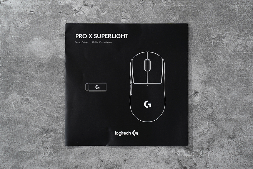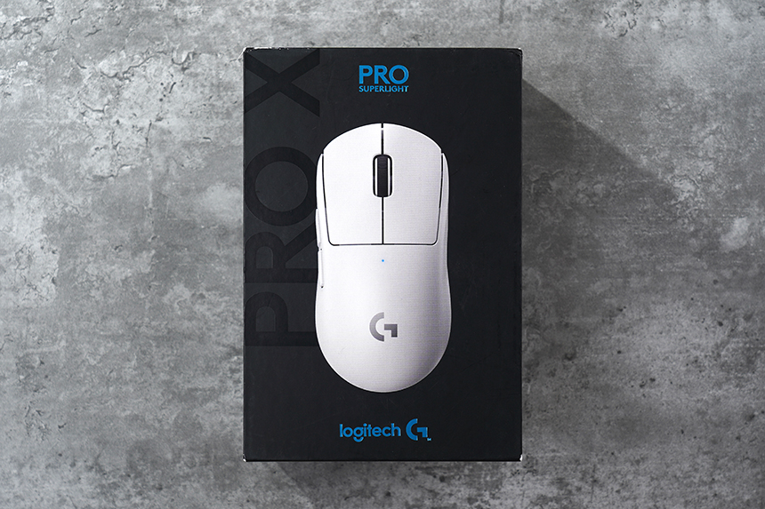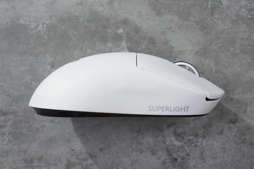 반대쪽 옆면에는 로지텍 G PRO X SUPERLIGHT 게이밍 마우스를 상징하는 슈퍼라이트라는 문구가 표시되어 있습니다. 평소에 무선 마우스가 배터리 무게 때문에 부담스러웠던 분들에게 딱 맞는 제품이라고 판단되었습니다.