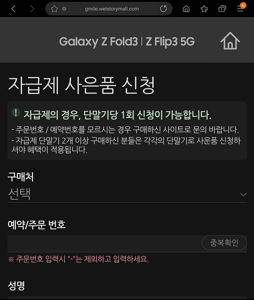지금까지 삼성 폴드3와 플립3 사전예약 사은품을 신청하는 방법을 자세하게 확인해 보았습니다. 신청 방법이 어렵지는 않지만 사전예약 번호를 미리 알고 있어야 한다는 점이 중요한 부분입니다. 그리고 지금은 사람이 몰려서 서버가 다운된 것 같은데요. 조금 기다려 보야야 할 것 같습니다.