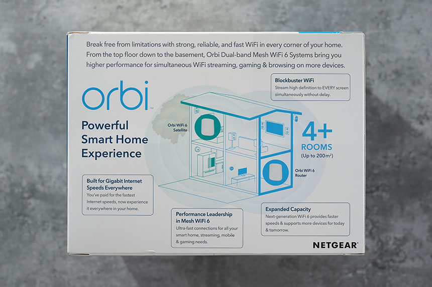 넷기어 오르비 RBK352 공유기의 박스를 살펴보면 최신 규격의 와이파이6를 지원한다는 문구가 표시되어 있습니다. 플래그십 스마트폰이나 최신 노트북에 탑재되고 있어서 가능하면 와이파이6 공유기를 선택하는 것이 좋습니다.