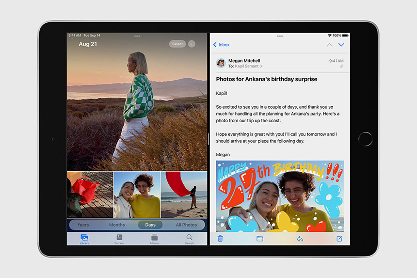 아이패드 9세대에는 iPadOS 15가 탑재되었고 멀티태스킹도 지원합니다. 화면의 크기가 큰 태블릿에서 해상 기능은 필수라고 할 수 있습니다. 그 외에도 스마트 키보드나 애플 펜슬과 같은 기능들도 지원합니다.