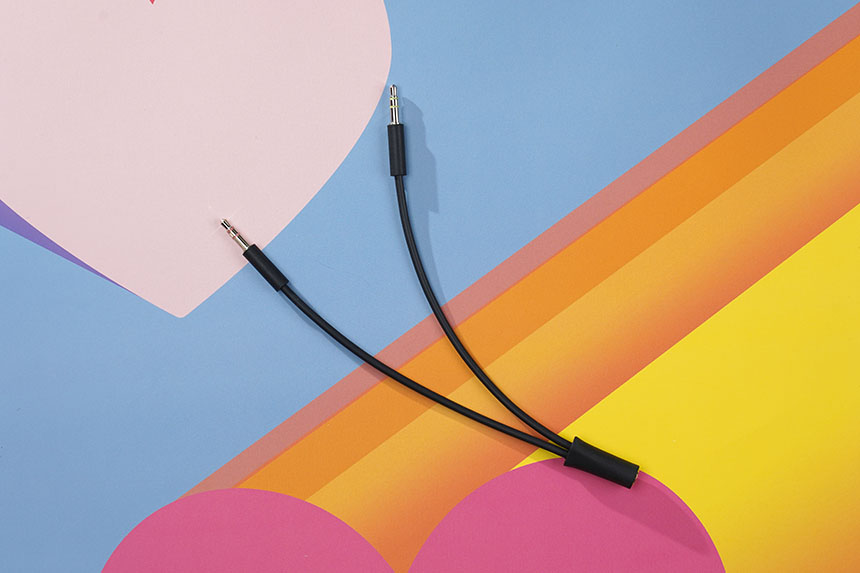 로지텍 G335 게이밍 헤드셋의 구성품을 살펴보면 데스크톱 PC 등에서 사용하기 위한 Y 스플리터가 기본으로 제공됩니다. 4극 형태의 커넥터를 3극 마이크와 이어폰 단자로 분리해 주는 역할을 합니다.