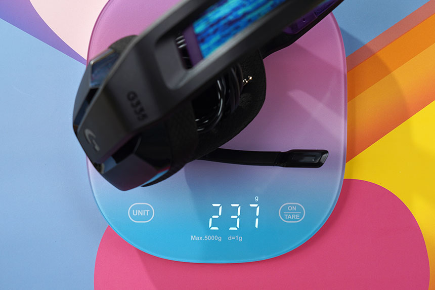 로지텍 G335 게이밍 헤드셋의 가장 큰 장점 중의 하나는 무게가 240g(실측 237g)으로 상당히 가볍다는 점입니다. 그래서 장시간 게임을 플레이해도 상대적으로 덜 피로한 편입니다.