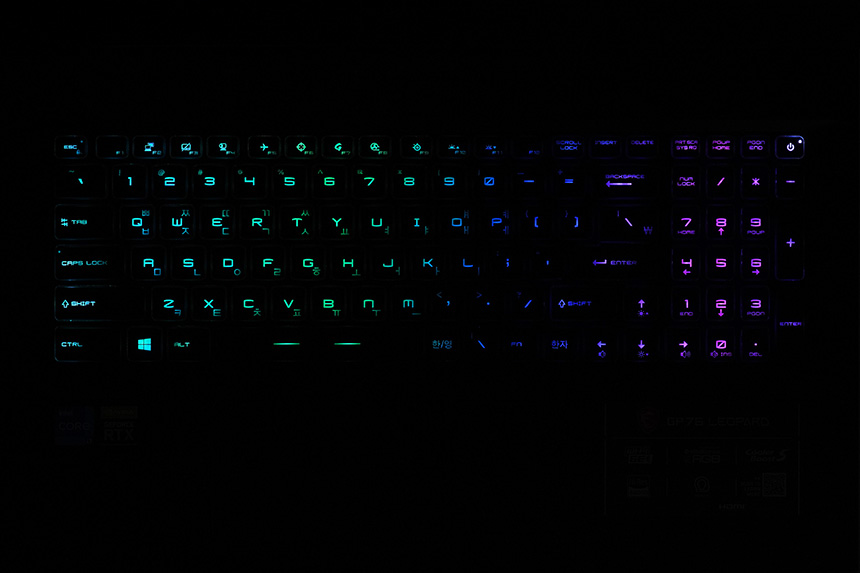 MSI GP76 레오파드 11UG의 키보드 키감은 경쾌한 느낌을 주는 편입니다. 그래서 장시간 게임을 플레이하거나 문서 작업을 해도 크게 피로할 것 같지는 않습니다.