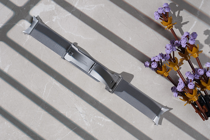 갤럭시 워치4 정품 밀레니즈 스트랩의 가장 큰 장점은 디자인입니다. 특히 실버 모델과의 매칭이 상당히 좋은 편이고 틈새를 매우는 형태로 디자인되어 있어서 일체감도 상당히 높습니다.
