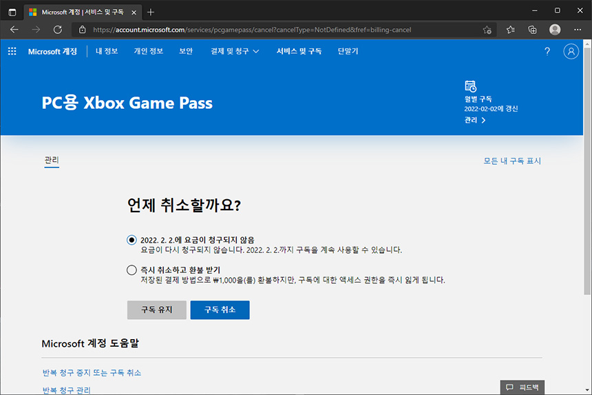 2. PC용 Xbox Game Pass 가입