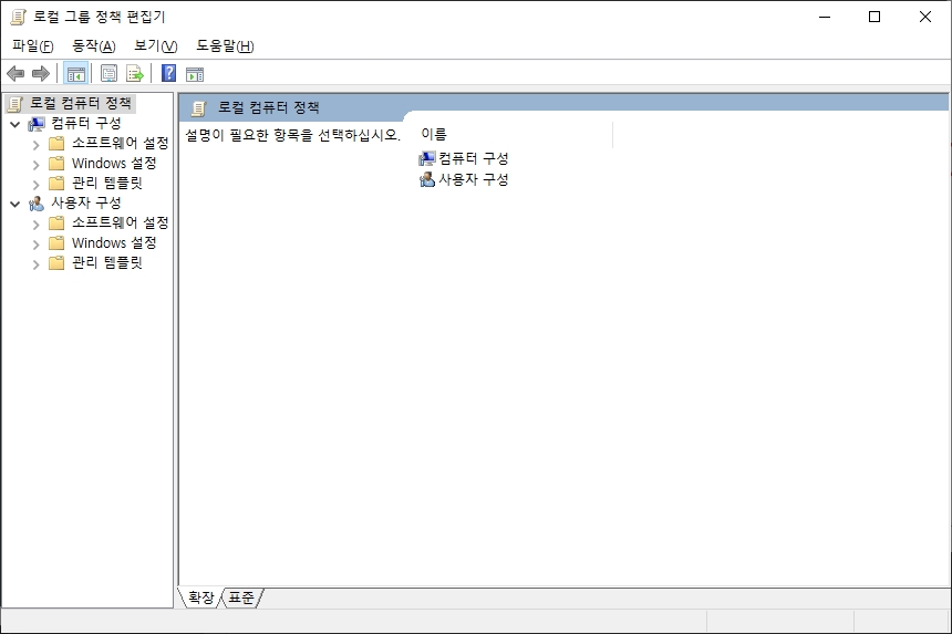 우선 윈도우키 + R을 누른 후에 실행 창에 gpedit.msc를 입력해 넣습니다. 그러면 로컬 그룹 정책 편집기가 실행됩니다. 다른 설정을 건드리면 오히려 문제가 발생할 수 있으니 주의하시길 바랍니다.