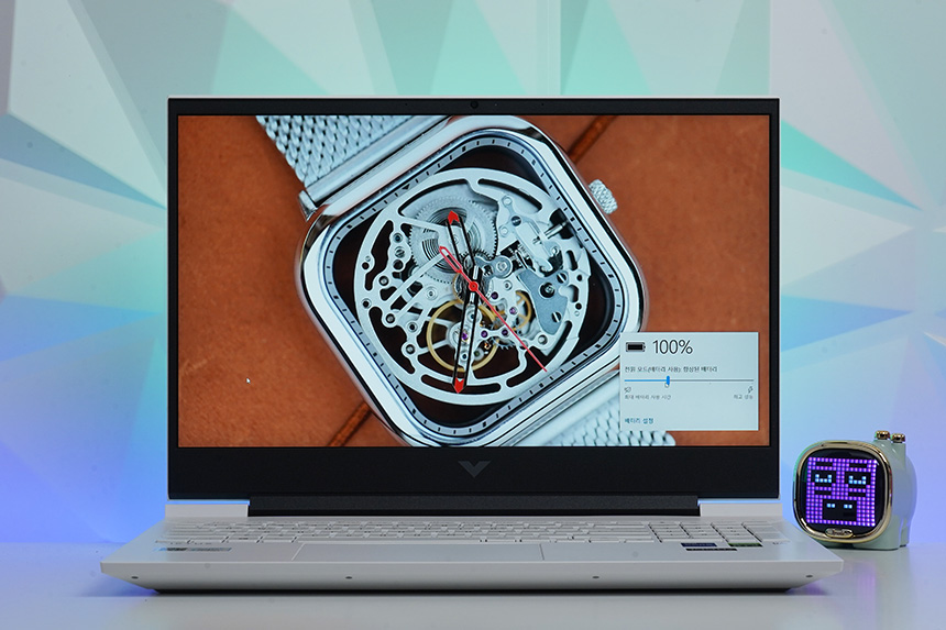 HP 빅터스 16-d0186TX에는 70Wh 용량의 배터리가 탑재되었고 화면 밝기 50%에서 동영상을 약 6시간 28분 정도 재생할 수 있었습니다. 참고로 배터리 시간은 사용 패턴에 따라서 큰 차이가 있을 수 있습니다.