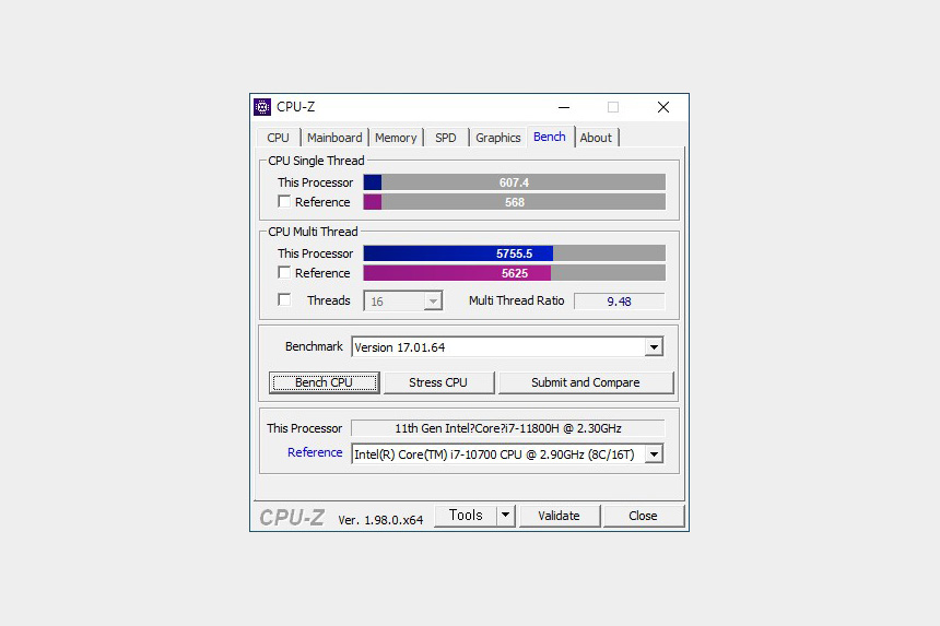 11세대 인텔® 코어™ i7-11800H 프로세서의 성능을 살펴보면 싱글과 멀티 모두 데스크톱급 퍼포먼스를 제공하는 것을 확인할 수 있습니다. 최고의 노트북 CPU 중의 하나라고 할 수 있습니다.