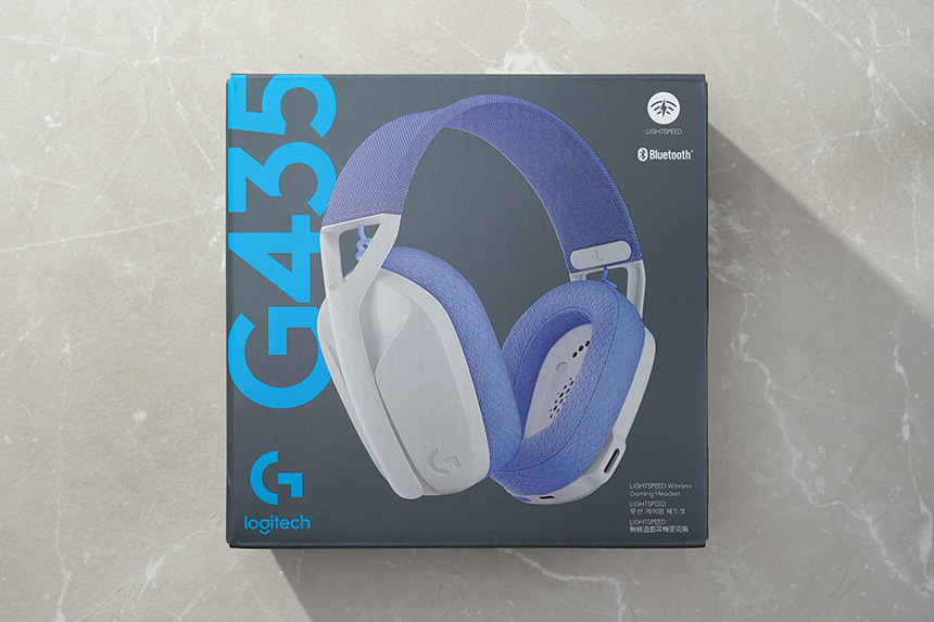 로지텍 G435 게이밍 헤드셋의 박스는 세련된 형태로 디자인되었습니다. 그리고 오른쪽 아래를 확인해보면 LIGHTSPEED 무선 게이밍 헤드셋이라는 문구가 표시되어 있습니다.