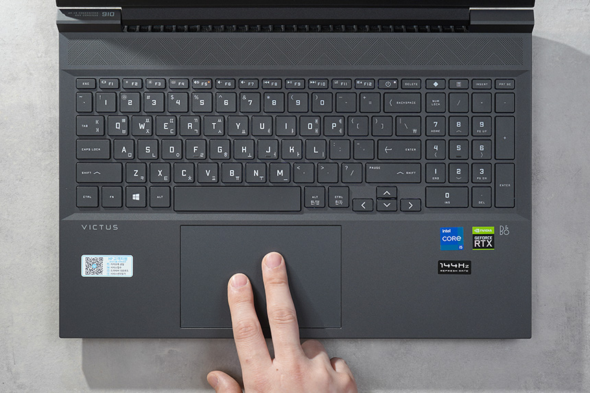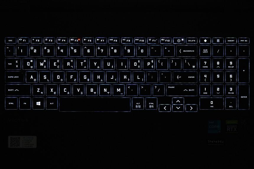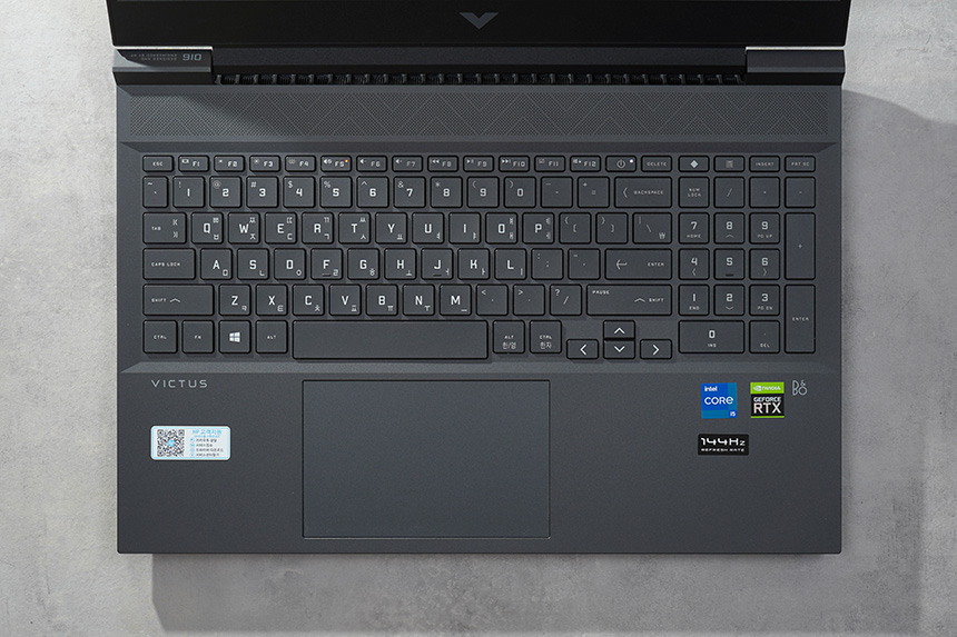 HP 빅터스 16-d0181TX 키보드의 키감은 상당히 깔끔한 느낌을 주는 편입니다. 그래서 장시간 타이핑을 하거나 게임을 플레이해도 크게 피로할 것 같지는 않습니다.