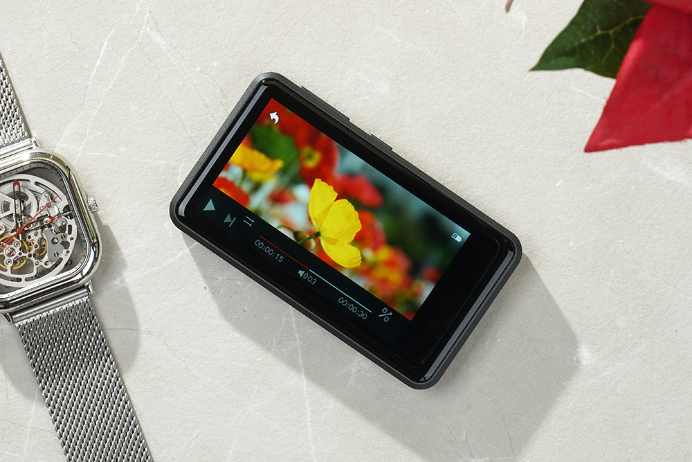에듀플레이어 EM500에는 3인치 (360 x 640) 크기의 터치 디스플레이가 탑재되었습니다. 스틱형 MP3 플레이어들과 비교해서 다양한 정보를 화면에 표시할 수 있다는 장점이 있습니다.