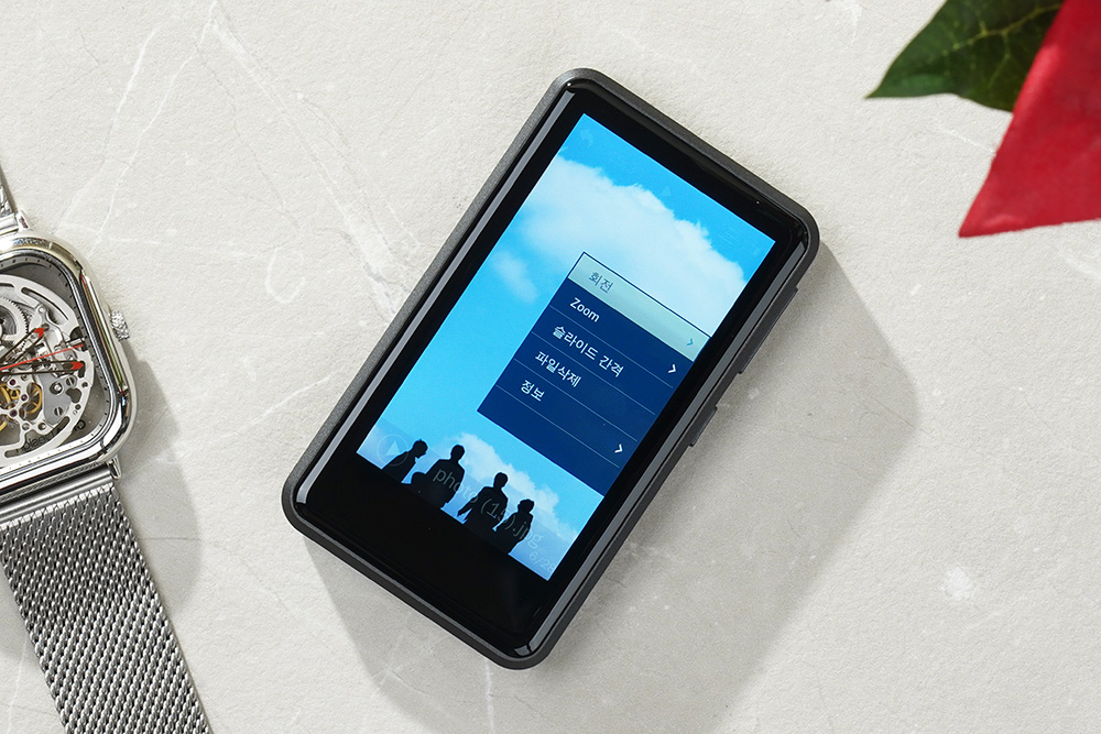 사진을 재생할 수 있는 기능도 갖추고 있습니다. 불러오는 속도가 조금 느리기는 하지만 썸네일도 지원하고 메뉴를 선택하면 회전이나 줌 그리고 슬라이드와 같은 기능들도 사용할 수 있습니다.