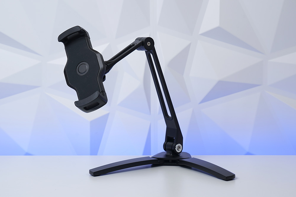지니비 2단 거치대 GTS2의 헤드를 연결하는 부분에는 전방위 각도 조절이 가능한 홀 헤드가 부착되어 있습니다. 그래서 자신이 원하는 각도로 스마트폰이나 태블릿을 조절할 수 있습니다.