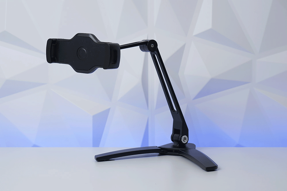 지니비 2단 거치대 GTS2의 헤드를 연결하는 부분에는 전방위 각도 조절이 가능한 홀 헤드가 부착되어 있습니다. 그래서 자신이 원하는 각도로 스마트폰이나 태블릿을 조절할 수 있습니다.