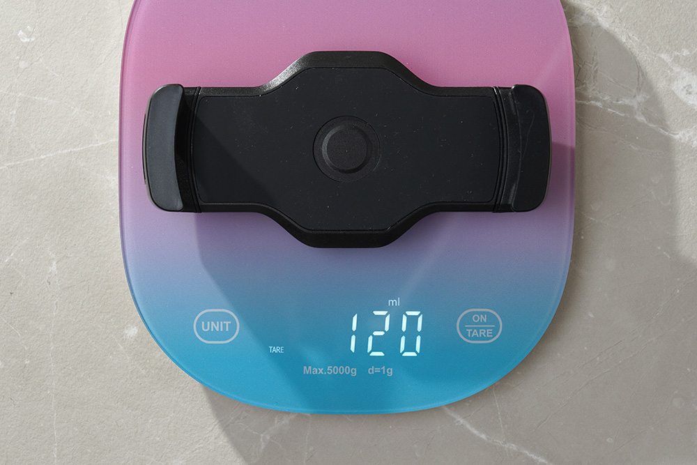 지니비 2단 거치대 GTS2의 기본 클립형 헤드의 무게는 120g으로 측정되었습니다. 스탠드 무게가 556g이었기 때문에 전체 무게는 676g이라는 것을 확인할 수 있습니다.