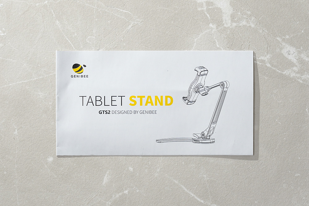 지니비 2단 거치대 GTS2는 스탠드와 헤드가 분리된 형태로 디자인되었습니다. 특히 스탠드는 메탙 소재로 제작되어서 안정적으로 태블릿을 지탱할 수 있습니다.