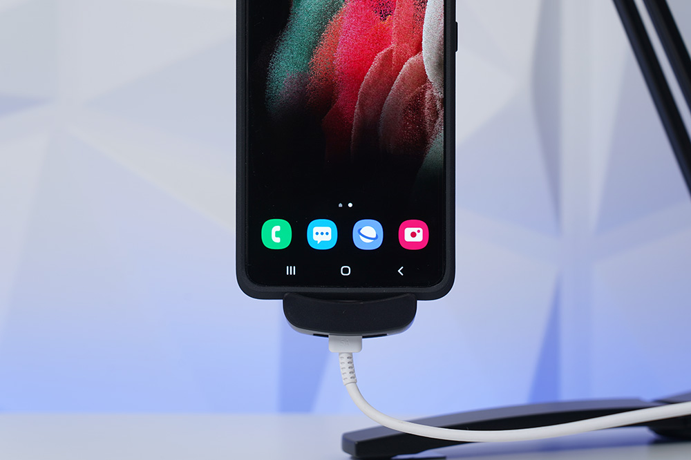 삼성 갤럭시 S21 울트라 같은 경우에도 안정적으로 장착할 수 있었고 기본 클립형 헤드의 아래쪽에 뚫려 있는 구멍을 통해서 충전 케이블을 연결할 수 있다는 점이 편리한 부분이라고 생각되었습니다.
