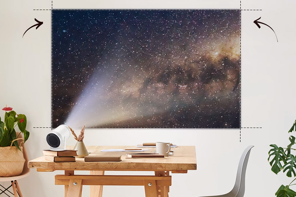 삼성 더 프리스타일의 핵심 기능 오토 키스톤과 레벨링 그리고 포커스 기능을 지원한다는 점입니다. 포터블 프로젝터로 설계되어 있으므로 장소를 자주 이동해서 사용하는 분들에게 필수적인 기능이라고 할 수 있습니다.
