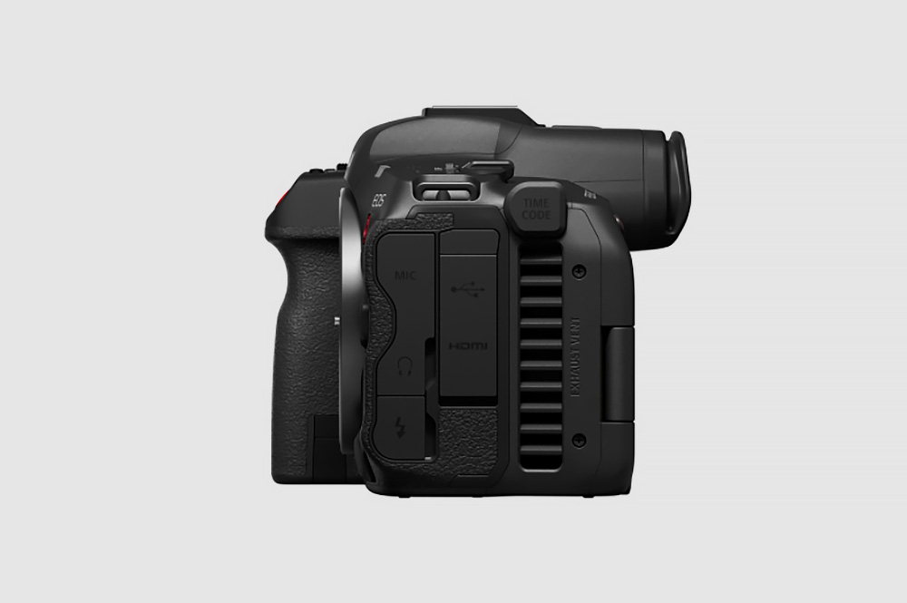 캐논 EOS R5 C 풀프레임 카메라의 또 다른 특징은 냉각 팬을 내장하고 있다는 점입니다. 후면 우측에서 흡기에서 축면으로 배기하는 구조로 제작되었고 장시간 동영상을 촬영할 수 있도록 도와줍니다. 그리고 외장 마이크나 헤드폰 단자도 가지고 있습니다. 그렇지만 아쉽게도 HDMI 단자는 풀사이즈가 아니라 Micro 타입입니다.