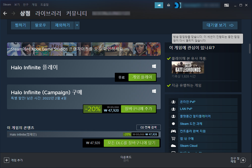 1. Halo Infinite(헤일로 인피니티) 47,920원