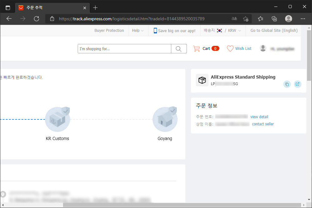 저는 주로 세일 기간에 알리 익스프레스를 이용하는 편입니다. 그리고 스탠다드 쉬핑이 아니면 구매를 하지 않는데요. 이번에 스탠다드임에도 불구하고 LP~SG로 시작하는 배송이 걸렸습니다.