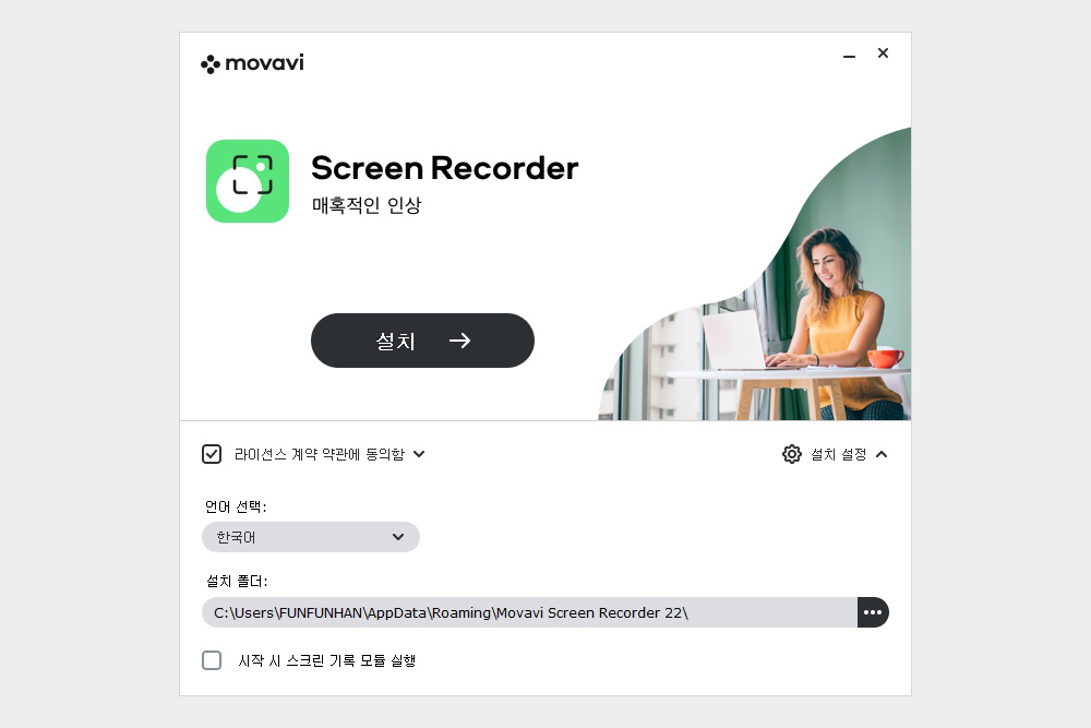 MovaviScreenRecorderSetupE.exe이라는 프로그램을 다운로드 다운로드 받은 후에 설치하면 언어 선택과 설치 폴더를 설정할 수 있는 메뉴가 표시됩니다. 참고로 설치 프로그램의 크기는 42.5MB로 부담스럽지 않은 편입니다.