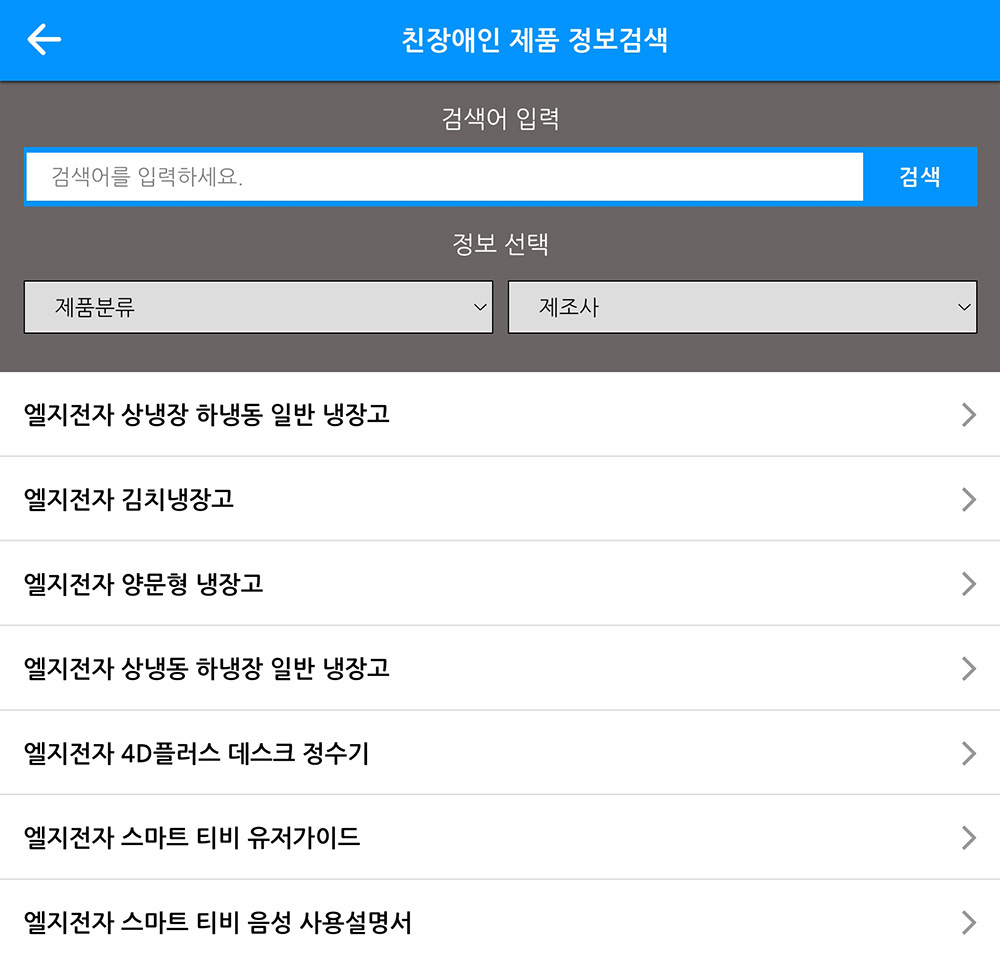 그리고 서울시 소비재 정보마당의 친장애인 제품이라는 메뉴를 확인해 보면 다양한 엘지전자 제품들의 사용 방법을 확인할 수 있는 음성 매뉴얼이 제공되고 있습니다. 그래서 사회적 약자들도 조금 더 쉽게 가전제품에 다가갈 수 있습니다.