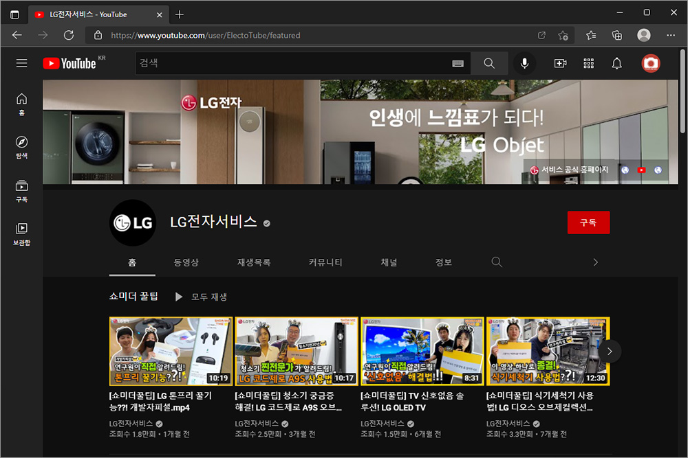 그 외에도 LG전자 서비스 유튜브를 살펴보면 다양한 제품들의 사용법과 자가 관리 그리고 주의사항 들이 영상 튜토리얼 형태로 제공되기 때문에 가전제품의 사용 방법이 서툰 분들도 쉽게 도움을 받을 수 있습니다.