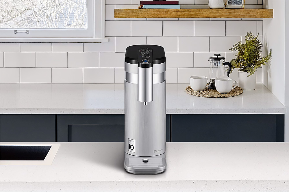 그리고 LG 퓨리케어 상하좌우 정수기에는 음성 안내 기능을 추가되었다는 점도 인상적인 부분입니다. LG ThinQ 앱을 이용해서 해당 기능을 켤 수 있고 특히 온도까지 음성으로 안내가 된다는 점이 편리한 부분입니다. 배리어 프리*한 제품이라고 할 수 있습니다.