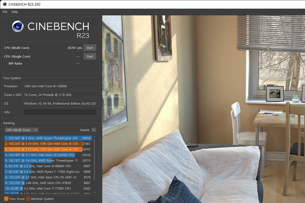 그리고 시네벤치 R23의 경우에는 26707pts로 측정되었습니다. 참고로 국민 오버는 50, 40, 42 정도인 것 같은데요. 오버 클럭을 했을 때의 성능 차이는 다음에 확인해 보도록 하겠습니다.