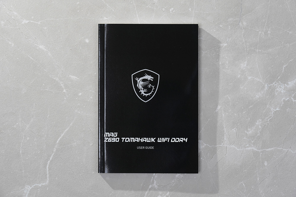 MSI Z690 토마호크 WIFI DDR4 메인보드의 구성품을 살펴보면 유저 가이드가 한 장 포함되어 있습니다. 한국어로도 설치 방법이 안내되어 있느니 한 번 정도는 자세하게 읽어 보는 것이 좋을 것 같습니다.