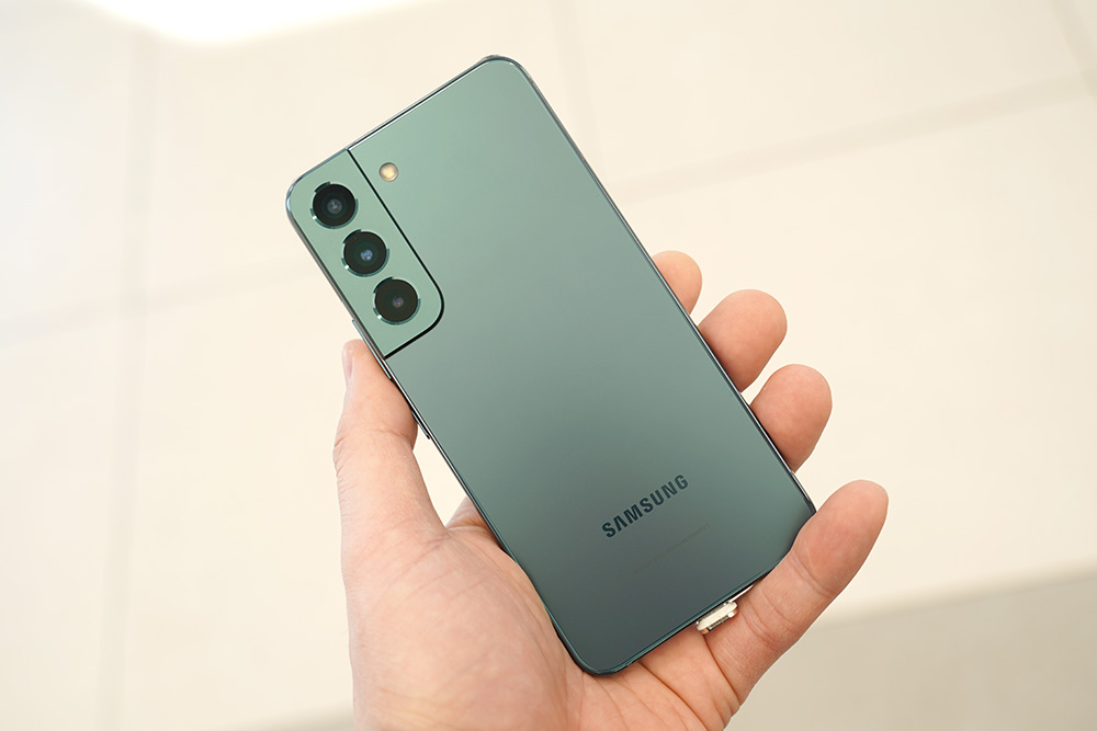 갤럭시 S22와 플러스에서 가장 인상적인 컬러는 바로 그린이라고 할 수 있습니다. 작년에 발표되었던 갤럭시 폴드3부터 시작된 색상이라고 할 수 있는데요. 뒷면의 매트한 무광 마감과 결합되어서 상당히 깔끔한 느낌을 주는 편입니다.