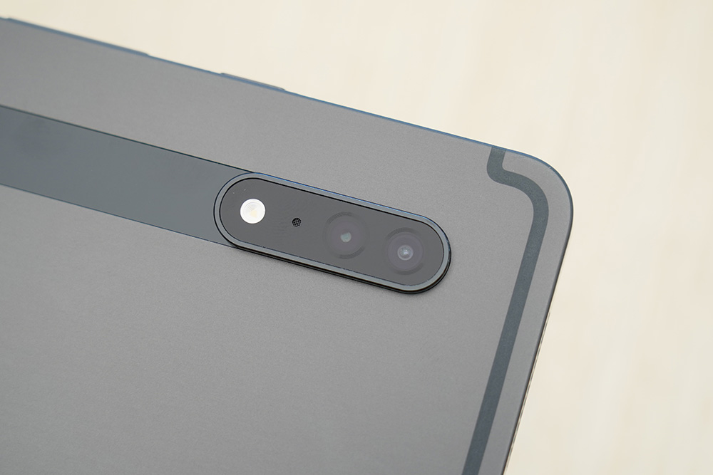 갤럭시 탭 S8 울트라에는 독특하게도 노치가 들어갔습니다. 그리고 안쪽에는 각각 1,200만 화소의 광각과 초광각 카메라가 탑재되었습니다. 삼성전자에서는 화상회의 등에서 유용하게 활용하기 위한 목적으로 보입니다.