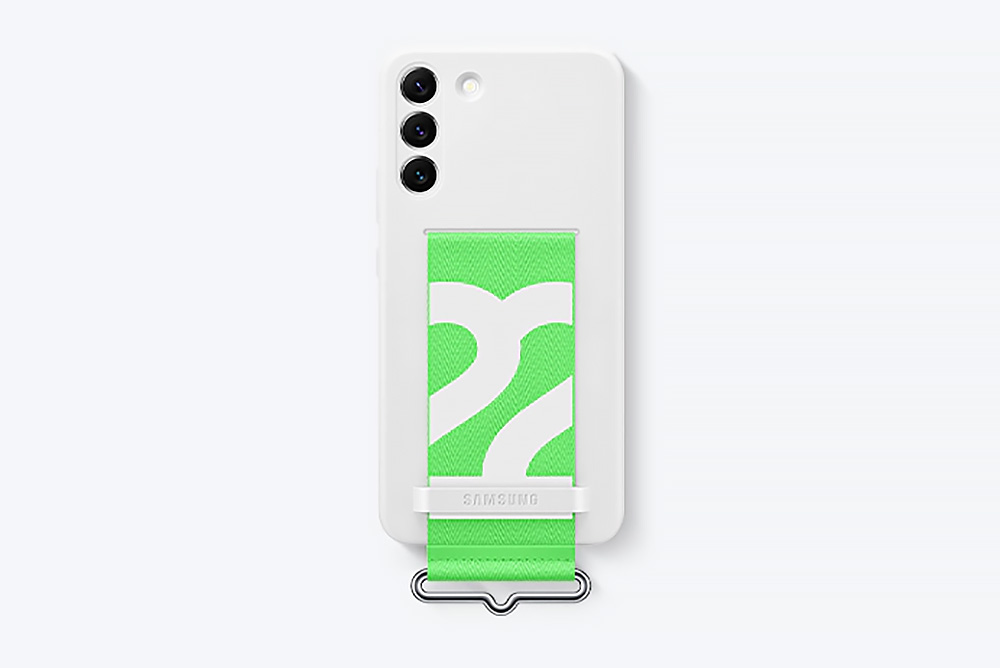 실리콘 커버 with 스트랩은 이름에서도 알 수 있듯이 뒺고에 스트랩이 부착되어 있어서 그립톡처럼 조금 더 안정적으로 갤럭시 S22를 잡을 수 있도록 도와주는 역할을 합니다. 조금은 팝한 느낌을 주는 편입니다. 그리고 색상은 화이트와 네이비 중에서 선택할 수 있고 가격은 44,000원입니다.