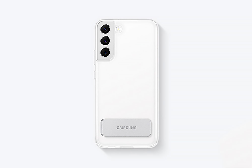 마지막으로 살펴볼 제품은 클리어 스탠딩 커버입니다. 클리어 커버에 킥 스탠드가 결합된 형태로 제작되었습니다. 그래서 갤럭시 S22를 이용해서 동영상 시청을 많이 하는 분들에게 적합할 것으로 예상합니다.
