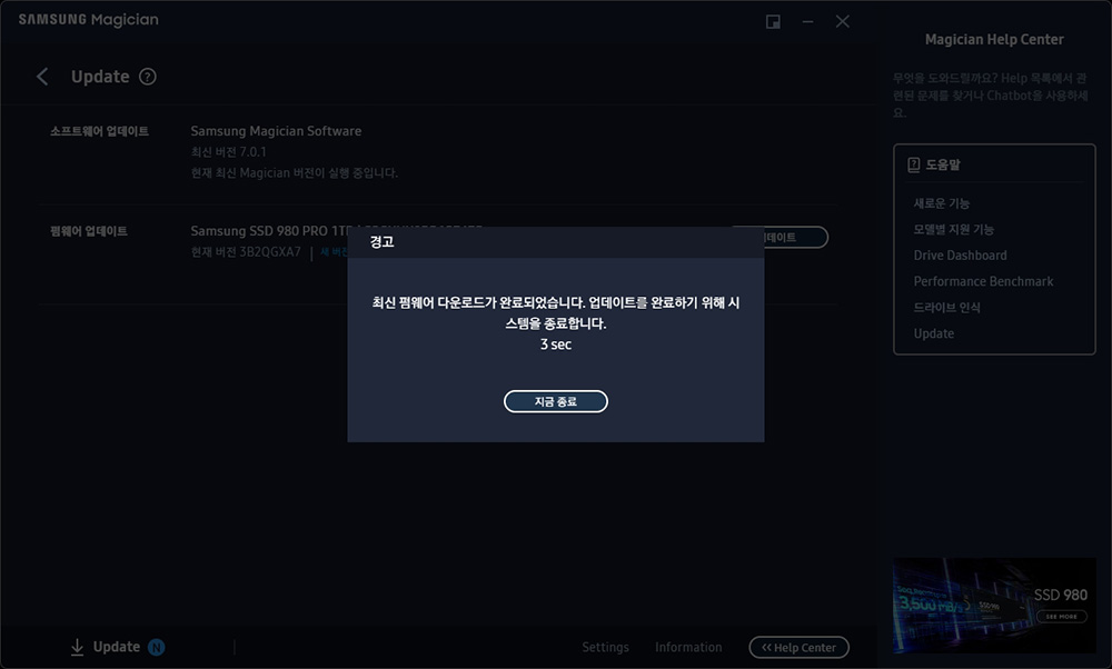 지금까지 삼성전자의 SSD의 펌웨어를 업데이트하는 방법을 자세하게 확인해 보았습니다. 컴퓨터 관련 지식 많지 않은 분들도 어렵지 않게 진행할 수 있어서 자신들이 사용하는 각종 하드웨어의 펌웨어 버전을 최신으로 유지하고 싶어 하는 분들은 펌웨어 업데이트를 한 번 해 보시길 바랍니다.