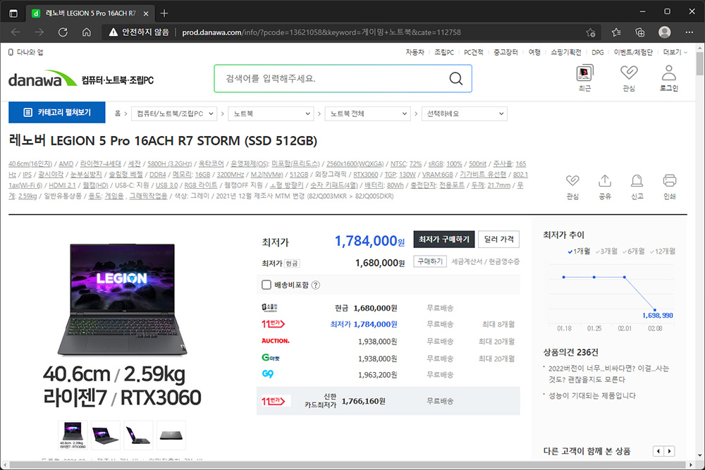 다음에는 게임을 플레이하거나 멀티미디어 콘텐츠를 편집하려는 분들에게 적한 제품은 레노버 LEGION 5 Pro입니다. AMD 라이젠 7 5800H 프로세서와 엔비디아 RTX 3060 그래픽카드를 탑재해서 대부분의 작업을 원활하게 처리할 수 있습니다.