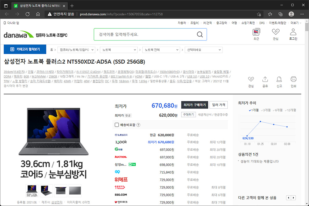 삼성전자 노트북 플러스2는 가성비 노트북을 찾는 분들에게 적합한 제품입니다. 11세대 인텔 i5 프로세서를 탑재했지만 가격이 60만원대로 상대적으로 저렴한 편입니다. 그리고 비슷한 제품을 사용해 본 경험에 의하면 완성도도 크게 떨어지지 않은 편입니다.