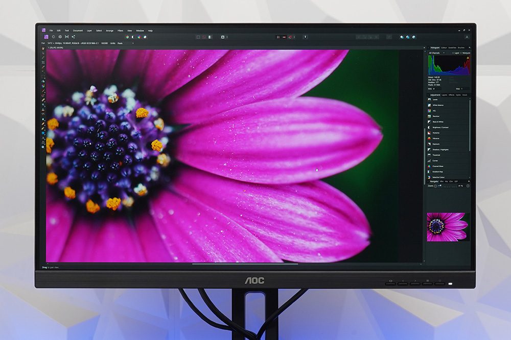 알파스캔 AOC Q24P2C USB-C 모니터에는 Delta E < 2를 충족합니다. 뛰어난 화면 균일도와 색상의 정확한 색 표현이 가능해서 사진이나 동영상 콘텐츠를 편집해야 하는 분들에게 유용합니다.