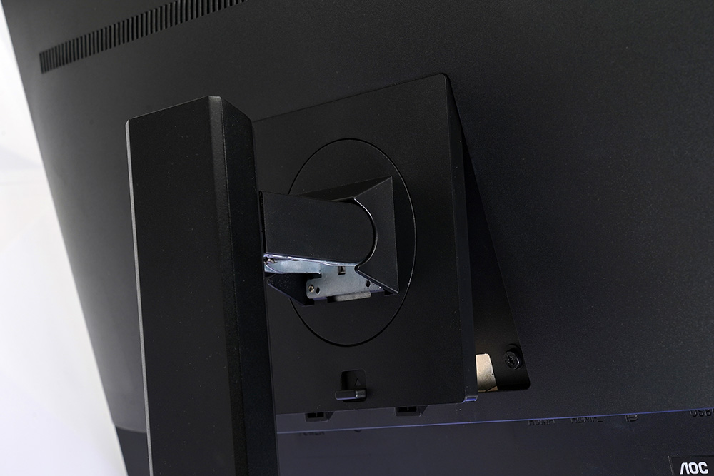 알파스캔 AOC Q24P2C USB-C 모니터는 원클립으로 조립이나 분해를 할 수 있도록 설계되었습니다. 그리고 내부에 100 x 100 베사홀이 준비되어 있어서 모니터암에 장착할 수도 있습니다.