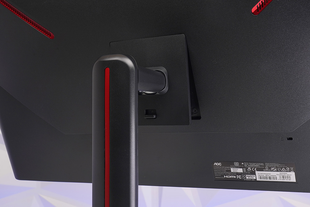 알파스캔 AOC Q32G3S 게이밍 모니터의 뒷면은 깔끔한 스타일로 제작되었고 레드 컬러로 포인트가 들어가 있는 모습인 인상적이었습니다. 전체적으로 군더더기 없다는 첫인상을 받았습니다.