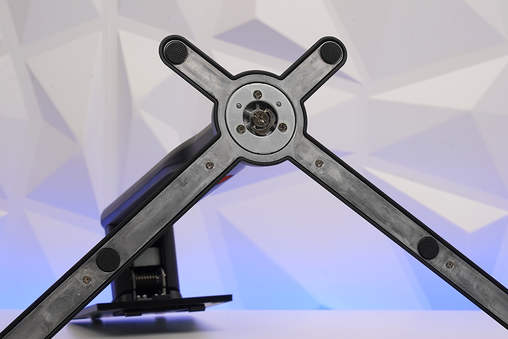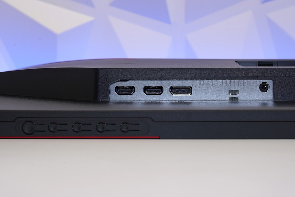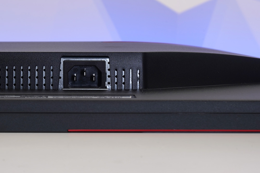 그리고 스탠드에는 전원과 영상 신호 케이블을 뒤쪽으로 정리해서 뺄 수 있는 홀이 준비되어 있습니다. 특히 레드 컬러의 포인트가 들어가 있다는 점이 인상적인 부분이었습니다.