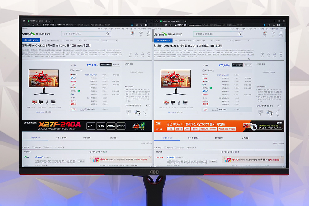 알파스캔 AOC Q32G3S 게이밍 모니터의 또 다른 활용 방법을 확인해 보면 우선 FULL HD(1920 x 1080)보다 높은 QHD(2560 x 1440) 해상도의 디스플레이를 탑재해서 한 번에 더욱 많은 정보를 표현할 수 있습니다.