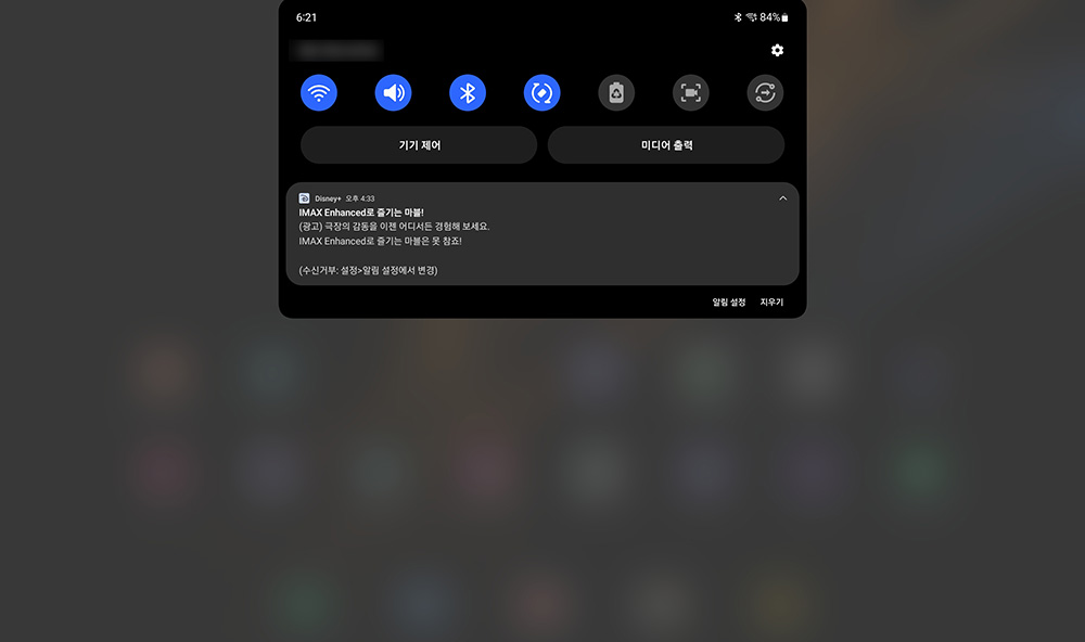 그래서 인터넷을 검색해 보니 디즈니+ 앱에서는 알림을 차단하는 기능이 없고 스마트폰이나 태블릿의 알림에서 해당 앱의 일람을 꺼주어야 한다는 내용을 확인할 수 있었습니다. 삼성 제품 기준으로 스위치를 변경해 주면 됩니다.