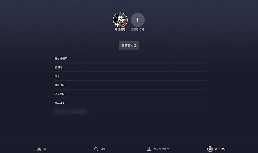 저는 설정의 알림 설정을 찾기 위해서 디즈니+ 앱을 열심히 찾아보았지만 내 프로필의 앱 설정이나 계정을 확인해 보아도 알림에 관련된 내용은 표시되어 있지 않았습니다.