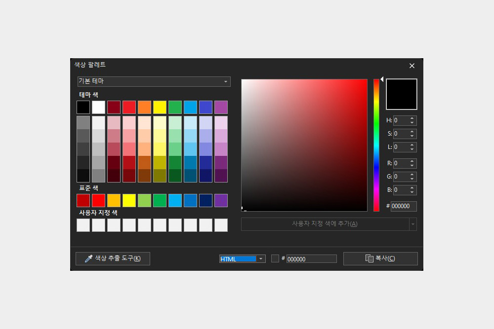 색상 추출 도구는 컴퓨터의 화면 컬러의 코드값을 확인할 수 있도록 도와주는 역할을 합니다. 디자이너들에게 유용한 기능이라고 할 수 있습니다. 그리고 색상 팔레트도 컬러를 확인할 수 있도록 도와줍니다.