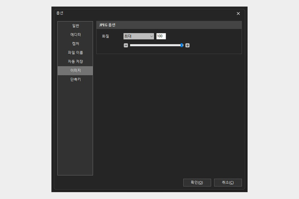 이미지에서는 JPEG 화질을 설정할 수 있습니다. 저는 가능하면 95 ~ 100으로 세팅하는 것을 추천하고 단축키도 다양한 옵션들이 준비되어 있어서 활용도가 높은 편입니다. 그리고 원 드라이브와 같은 프로그램과 단축키가 겹칠 수 있는데요. 이런 경우에는 하나의 프로그램에서 해제를 해주어야 합니다.